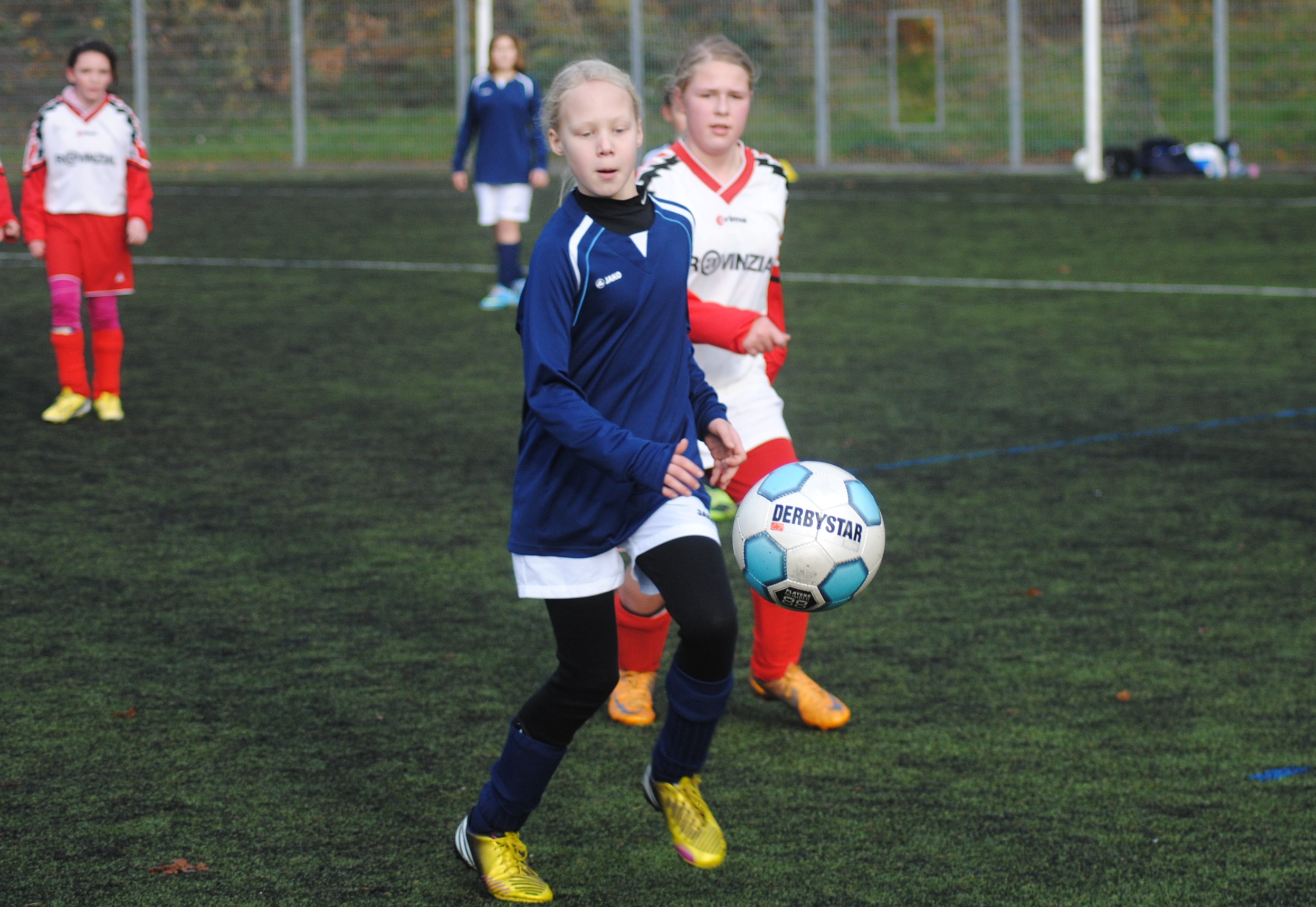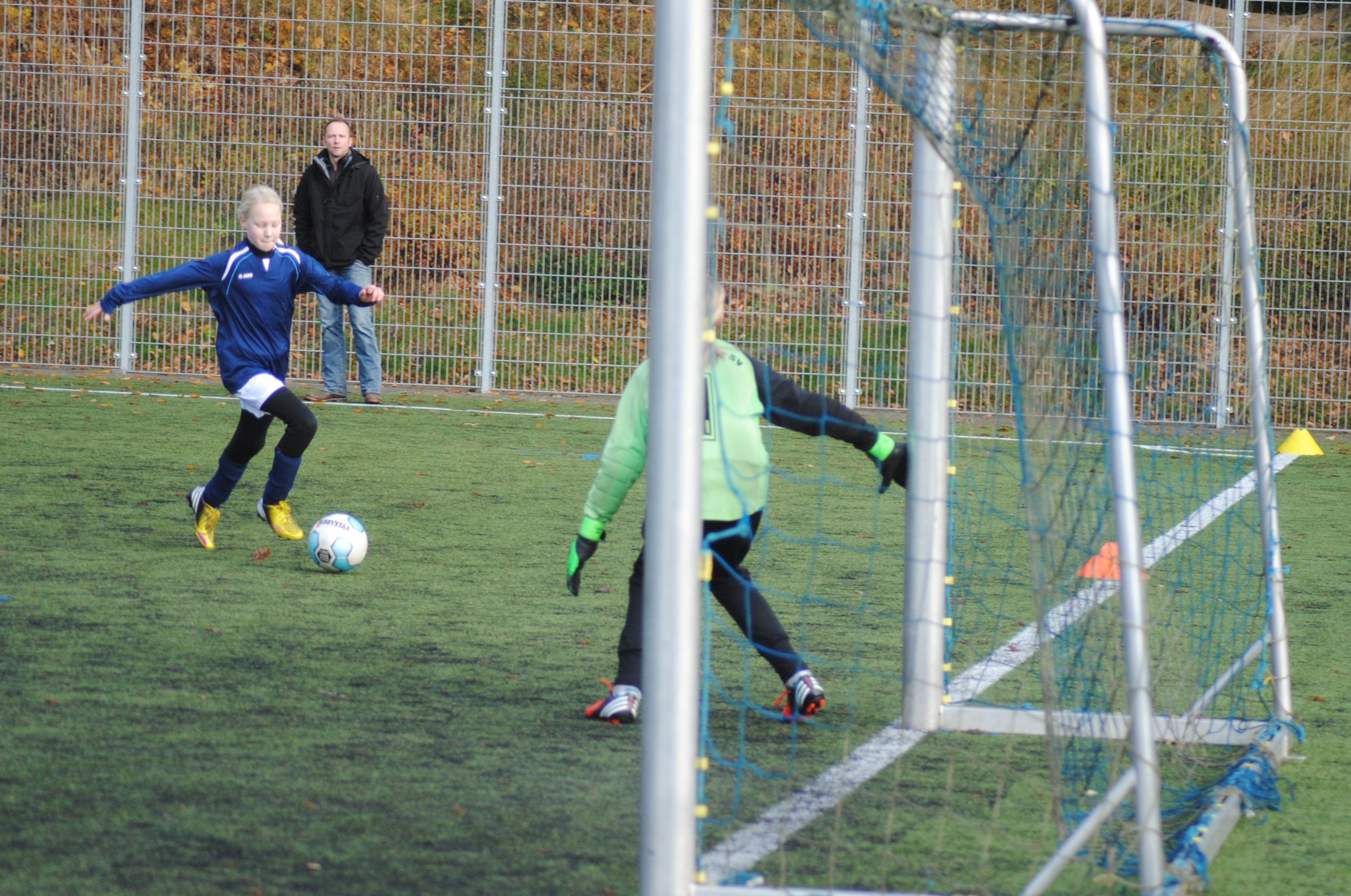 Unser Mittelfeld und unser Sturm, brannten heute teilweise ein tolles Feuerwerk des Kombinationsfußballs ab, besonders Amy hatte heute eine Sahnetag erwischt und hebelte die gegnerische Abwehr immer wieder mit schnellen Vorstößen über den rechten Flügel auf - toll auch das Verständnis mit Sinah, die heute ebenfalls eine super Partie in der Zentrale spielte und von dort ihre Mitspielerinnen immer wieder gekonnt in Szene setzte. Auf der linken Seite setzte Annika die Nadelstiche und bereitete ebenfalls einige gefährliche Situationen gekonnt vor, in der Mitte versuchte dann meist ihre Schwester Wiebke die Tore zu machen, wobei ihr 1:0 absolut sehenswert war. Leider scheiterte Anna knapp alleine vor dem gegnerischen Tor, sie hat sich heute toll eingebracht und wir alle hätten ihr dieses Tor gegönnt. Nur wieder zu einem Kurzeinsatz heute kam unsere sonstige "Torschützin vom Dienst" Nina - sie ist leider noch immer etwas angeschlagen - Kopf hoch Nina, das geht auch wieder weg.