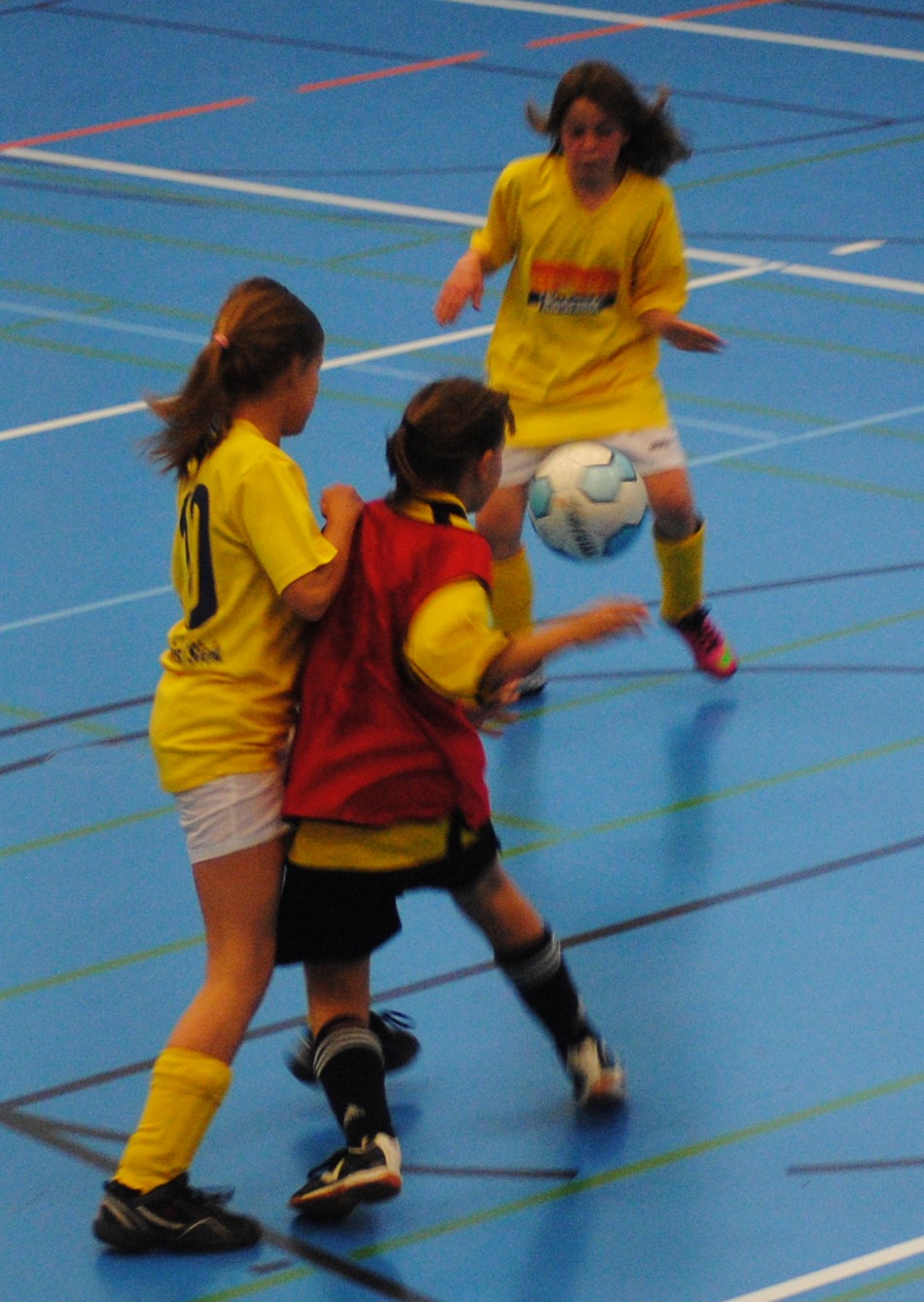 Der Start in das erste Spiel gegen den TSC Wellingsbüttel war etwas zäh. Der TSC ging früh mit einem Fernschuß (Torfrau Melina war die Sicht versperrt) in Führung. Unser Passspiel klappte noch nicht so richtig aber trotzdem erspielten wir uns ein Chancenübergewicht inkl. einem Lattenkracher von Nina aber es reichte nicht und die Partie ging mit 0:1 verloren. Gegen die unbequemen Zarpenerinnen gelang uns ein verdienter 1:0 Erfolg. Dann ging es gegen das stärkste Team aus ganz Hamburg, den SC Condor. Die gelb-schwarzen hatten in der letzten Saison als E-Juniorinnen in HH das Triple gewonnen. In Hamburg gab / gibt es wesentlich mehr E-Mädchenteams als in SH. Condor hatte seine ersten beiden Spiele mit 4:1 und 8:1 gewonnen und deren "Nr. 8" war extrem stark und hatte bereits diverse Treffer erzielt. Unser "kleiner Messi" bekam vom TrainerTeam den Spezialauftrag, die "Nr. 8" auf Schritt und Tritt zu verfolgen und möglichst aus dem Spiel zu nehmen. "Messi", zäh und bissig wie immer, machte das großartig und die "Nr. 8" war sichtbar genervt. Allerdings hatte Condor vorne drin eine körperlich sehr kräftige und schussstarke Spielerin, welche wir nicht in den Griff bekamen und diese erzielte dann 3 Tore gegen uns. Torfrau Melina hatte bis dahin (spielte am Vormittag hervorragend bei der E) wieder eine starke Leistung gezeigt, musste aber mit einer Handverletzung aufgeben. Plötzlich hatten wir dann auch noch 3 angeschlagene Feldspielerinnen und somit kam dann doch noch Nele K. zum Einsatz und Marie ging zwischen die Pfosten (spielte dort 3 starke Partien). Nach 6 Min. Pause mussten wir zum Start der Rückrunde gleich wieder gegen den SC Condor ran, der etwas umgestellt hatte. Was dann folgte, war wirklich aufregend. Unser "kleiner Messi" war nochmal heiß auf die "Nr. 8" und löste ihre Aufgabe zum zweitenmal grandios. Unser Team fightete bis zum umfallen und ging mit 1:0 in Führung. Dann schoss Wiebi von links aus spitzem Winkel flach in`s lange Eck. Der Ball ging an der Torfrau vorbei und prallte gegen das direkt neben dem Pfosten (im Tor liegendende) Kuscheltier zurück in deren Arme. Dem Schiri war das leider entgangen und somit gingen wir nicht mit 2:0 in Führung. Zu allem Überfluß mussten wir 8 Sekunden vor Ende der Partie noch den bitteren Ausgleich hinnehmen. Unser Team zeigte in diesem Spiel eine hervorragende Leistung und die Zuschauer auf der Tribüne waren begeistert. Partie nicht gewonnen aber als einziges Team dem SC Condor einen Punktverlust zugefügt. Nach unserem erneuten verdienten 1:0-Sieg gegen den TSV Zarpen hatten wir 7 Punkte auf dem Konto, der TSC Wellingsbüttel (unser letzter Gegner) bereits 9 Punkte. Somit benötigten wir einen Sieg gegen den TSC, um den 2. Platz noch zu erreichen. Unsere Mädls zeigten ein gutes Spiel und gewannen verdient mit 2:0.